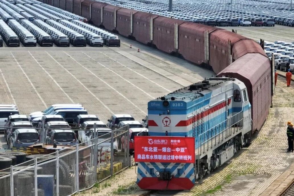 不久前,一列装载着300余辆商品车的铁路运输专用车从山东港口烟台港鸣笛启程,沿着新亚欧大陆桥一路西行,驶向新疆霍尔果斯,经由霍尔果斯口岸出境分拨,送至哈萨克斯坦、乌兹别克斯坦等中亚国家。