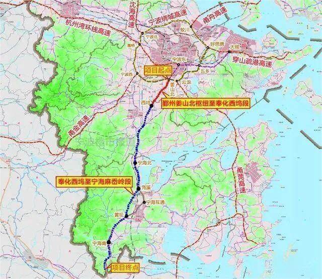 改扩建项目概况:项目起自G15沈海高速公路宁波市奉化区西坞街道,接同步改扩建的G15沈海高速公路宁波姜山至西坞段,经奉化区岳林街道、尚田街道、莼湖街道,宁海县西店镇、梅林街道、黄坛镇、前童镇、岔路镇、桑洲镇,止于G15沈海高速宁波市宁海县麻岙岭隧道甬台界,接改扩建的G15沈海高速公路三门麻岙岭至临海青岭段。项目路线全长约69.051公里,其中沿既有高速两侧抬升高架长5.918公里,改扩建段长47.679公里,新建段长15.454公里。