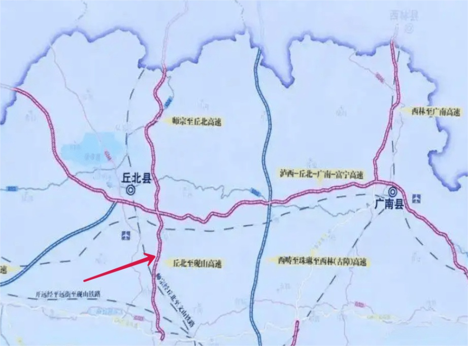 本项目途经文山州的丘北县、砚山县两县,涉及丘北县县城锦屏镇、天星乡、砚山县维摩乡。起点:路线起点于丘北县双龙营镇侧坝子村,远期往罗平方向延伸。终点:路线止于砚山北侧,接蒙文砚高速止点K127+906处;本项目路线全长63.78km,按双向四车道高速公路,设计速度100km/小时,路基宽度为26米标准建设。共44座桥梁,共长16870米。设置隧道16座,共长15200米,其中特长隧道1座,长3945米;桥隧总长32070米,占路线全长50.20%。互通式立交6座。本项目共设置有五条互通连接线,分别为双龙营互通连接线、丘北互通连接线、天星互通连接线、维摩互通连接线和红舍克互通连接线。其中:双龙营互通连接线8.627km,按二级公路标准,路基宽度12.0m;丘北互通连接线1.5km,按一级公路标准,路基宽度20.0m;天星互通连接线7.916km,其中按一级公路标准,路基宽度20.0m连接普炭一级公路段里程4.216km,按二级公路标准,路基宽度10m连接天星乡段里程3.7km;维摩互通连接线3.897km,按二级公路标准,路基宽度10.0m;红舍克互通连接线1.572km,按一级公路标准,路基宽度20.0m。计划工期:36个月。