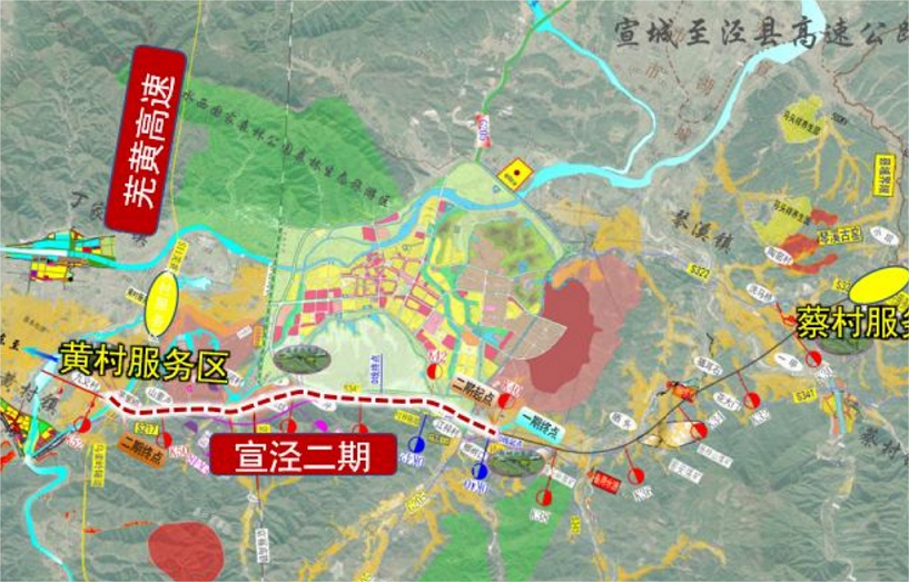 项目规模:宣城至泾县高速公路建设二期工程起点位于泾县江梓村北侧,顺接一期工程,设置榔树口落地互通后向西上跨G205、穿越牛形山设江梓隧道,而后基本平行S341向西布线经耙齿岭、江冲;于江冲西南设置泾县西互通后下穿京福高铁后继续向西分布跨越S217、秦坑河,与在建芜黄高速公路相接设泾县枢纽,至宣泾高速终点。建设里程11.27km,全线采用双向四车道高速公路标准,设计速度120km/h,路基宽度26米,沥青混凝土路面;投资估算175300万元。