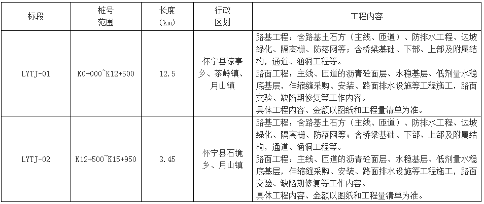 LYTJ-01标段中标人:中铁四局集团有限公司、安徽省交通建设股份有限公司联合体,中标价:8.7亿元;LYTJ-02标段中标人:安徽开源路桥有限责任公司,中标价:6.8亿元。