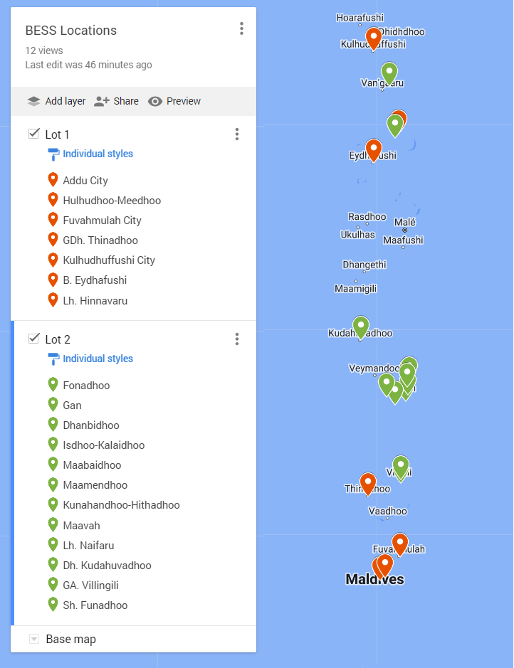 马尔代夫储能项目位置分布图