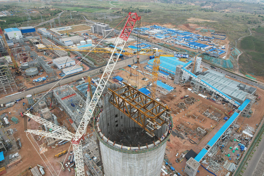 شنشى لونغهوا الفحم الصف الصف نظيفة وفعالة الاستخدام الشامل للمشروع استخدام 1250t رافعة مجنزرة رفع التحبيب برج الجمالون الصلب 117 متر ، وضعت بدقة في 99 متر ارتفاع الإطار على أساس نجاح هذه المهمة .