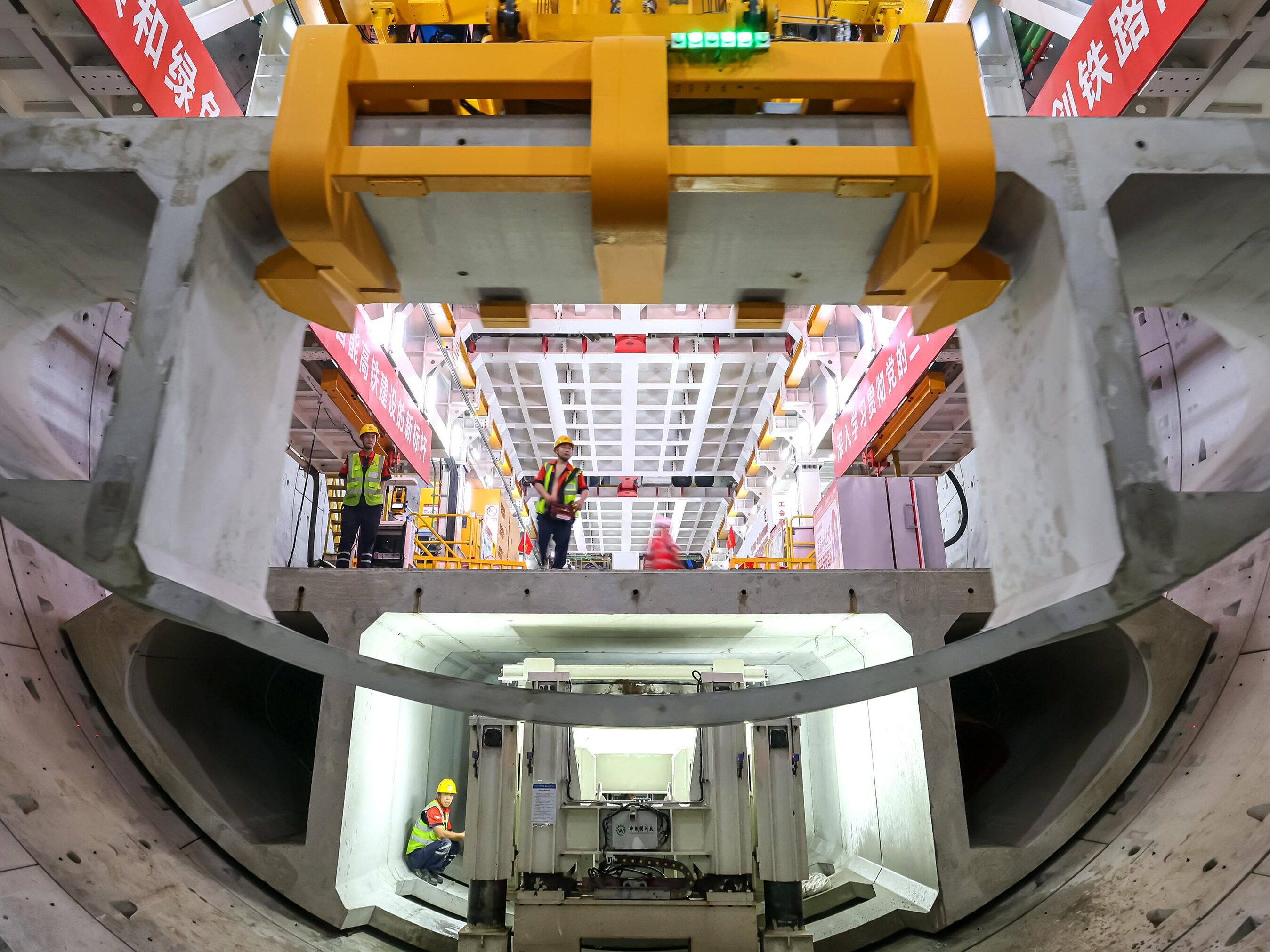 قبل رفع بدأت رسميا ، إدارة المشروع بتنظيم بناء الموظفين على الفور تركيب السلالم والممرات وغيرها من المرافق في المكان ، من أجل إعداد كامل رفع . في الساعة العاشرة من صباح يوم 31 تموز / يوليه ، رفع بدأت رسميا . 1250t كاتربيلر رافعة رفع الجمالون الصلب إلى 117 متر ارتفاع ، من خلال تشغيل رافعة ، رافعة تعديل مكان العمل ، بحيث يتم وضعها فوق برج التحبيب ملموسة الإطار . بعد ذلك ، الجمالون الصلب يقع على أساس الإطار الداخلي من التحبيب برج 99 متر ارتفاع ببطء ، من خلال كل المحاذاة و تثبيت ثابت ، رفع و وضع الجمالون الصلب بنجاح .