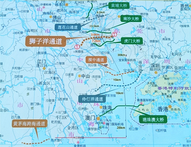 珠江口主要跨江跨海通道示意图