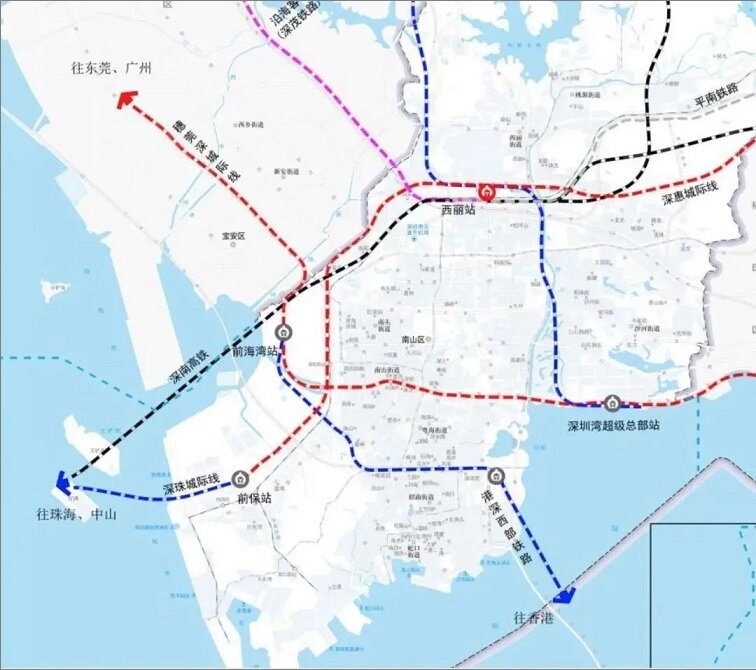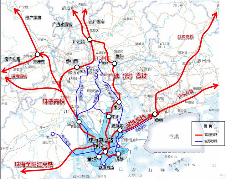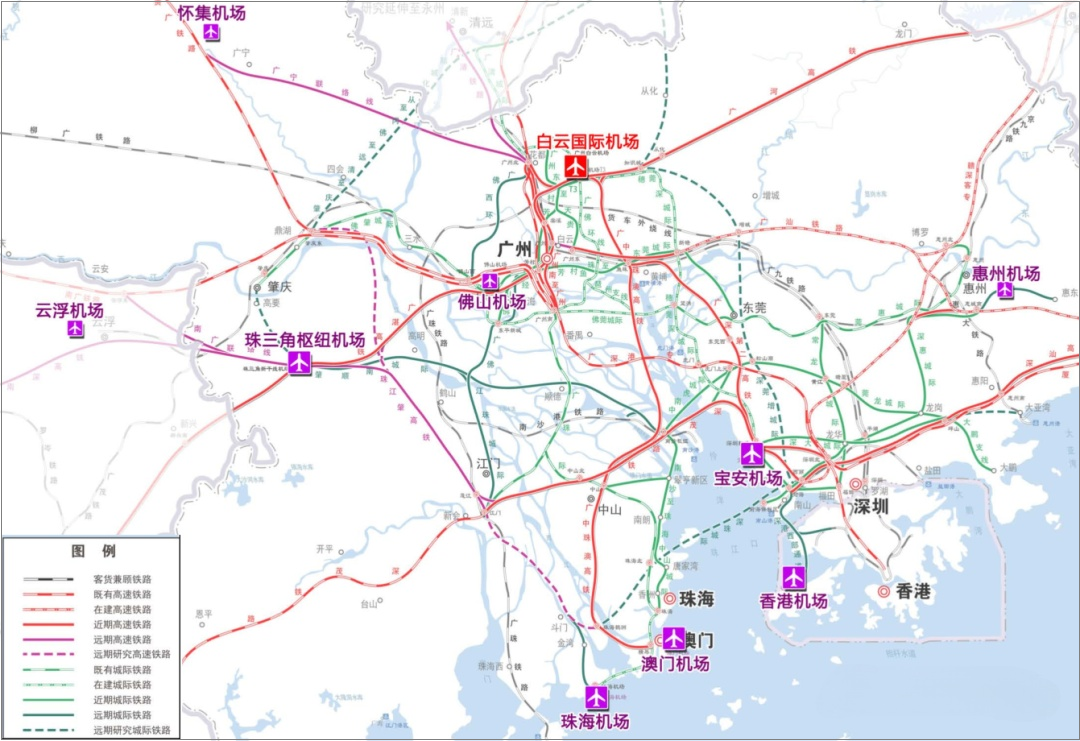 粤港澳大湾区铁路规划示意图
