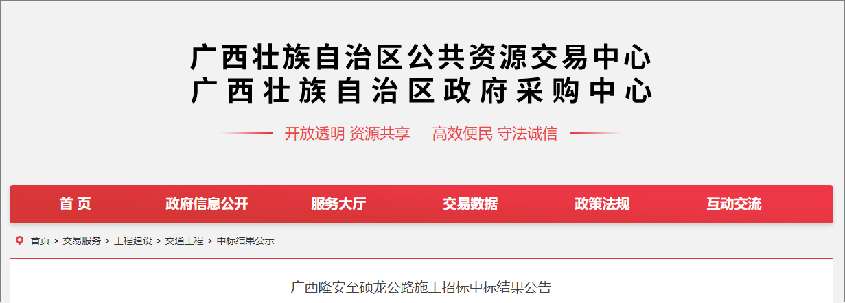 近日,广西壮族自治区公共资源交易中心发布了隆安至硕龙公路施工招标中标结果公告,该项目由当地强企中标,投标报价92.5亿元。