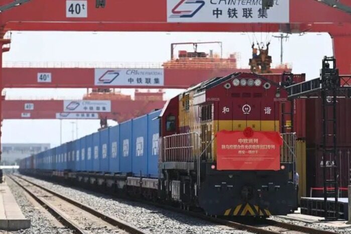 Recently, the X8020 China Europe freight train, loaded with 110 TEUs of exported goods, departed from the railway Yiwuxi Station and headed to Madrid, Spain, marking the opening of China's 10000th China Europe freight train in 2023.