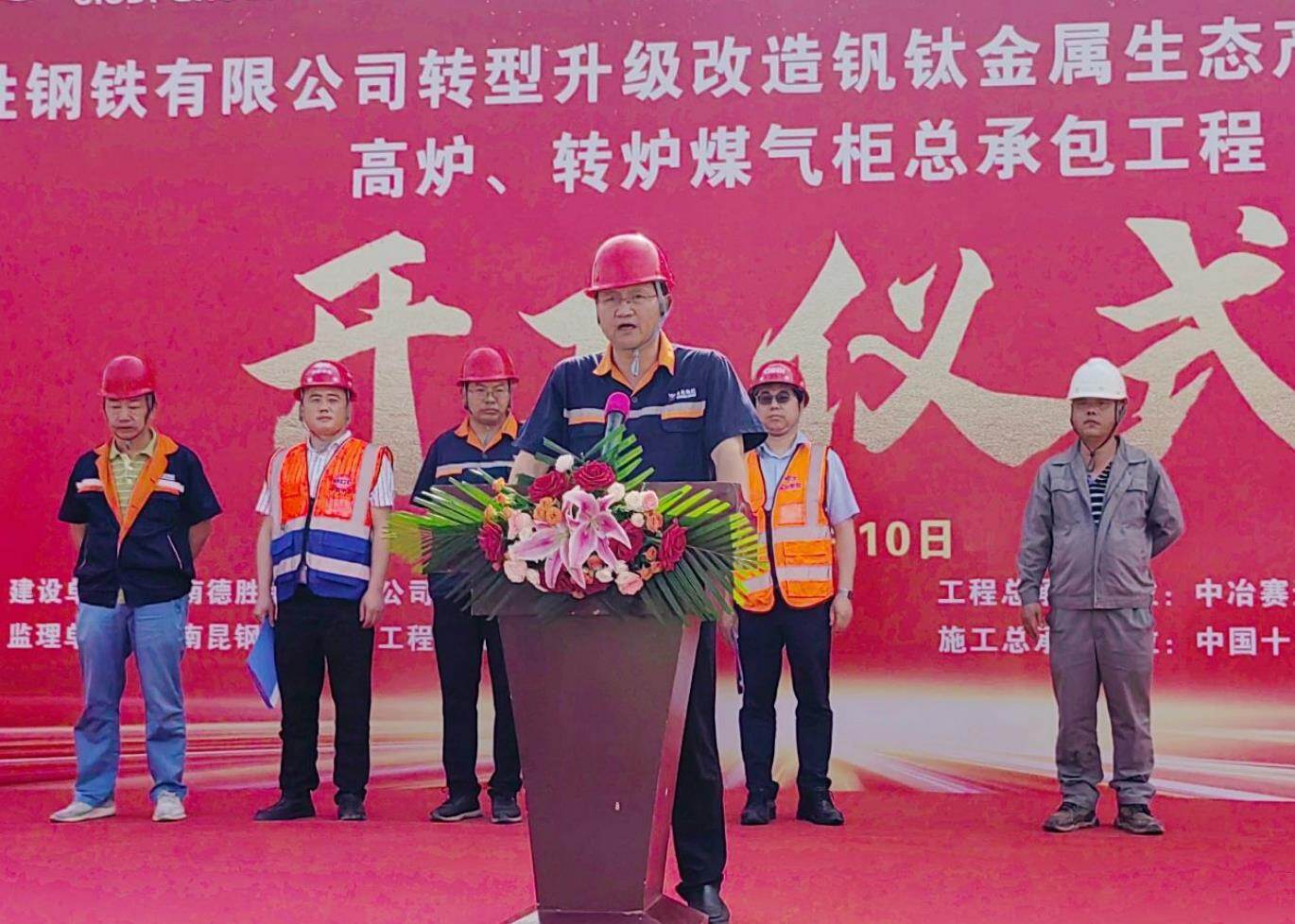 2023年8月10日上午,云南德胜钢铁有限公司转型升级改造钒钛金属生态产业园一期项目煤气柜工程开工。开工仪式上,十九冶集团公司副总经理梁鹏、中冶赛迪热工环保副总经理梁广分别讲话,感谢云南德胜钢铁有限公司的信任,他们表示将高标准、严要求,精心组织、周密安排,保质保量如期完成项目建设任务,交上圆满的答卷。