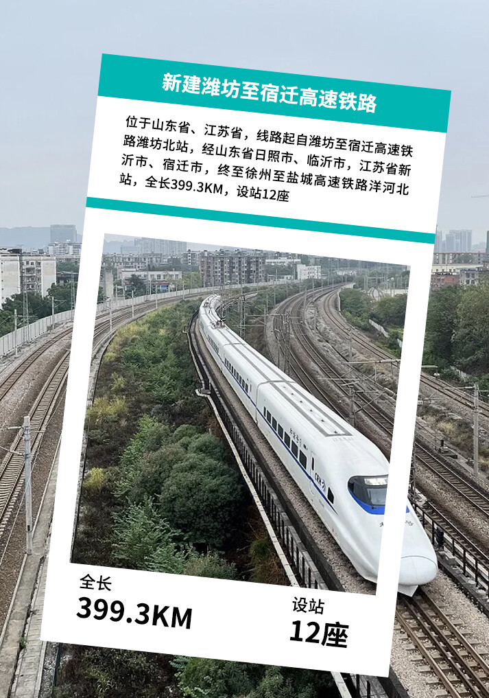 新建潍坊至宿迁高速铁路是国家八纵八横高速铁路网之京沪辅助通道的重要组成部分。项目包括潍坊至宿迁高铁主线及青岛连接线两部分内容,估算总投资近1000亿元。
