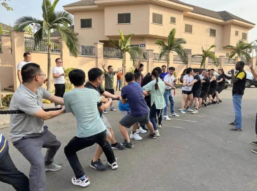 尼日利亚有限公司在保障生产经营的同时,保障好员工的身心健康,组织了一系列与使领馆、能建国际集团西北非区域总部、华为、尼总商会等单位联学联建,开展了乒乓球、羽毛球、足球、拔河、烧烤等一系列丰富多彩的活动,提高了团队凝聚力、增强了体魄。