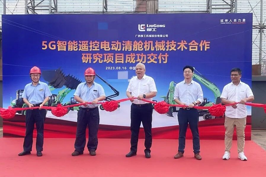 2023年8月16日,由柳工与某港务集团联手共建的5G智能遥控电动清舱机械技术合作研究项目交付仪式隆重举办,3台柳工5G遥控电动装载机856HE MAX、1台柳工5G遥控电动挖掘机922FE交付使用,填补了我国散杂货港口的新能源、无人驾驶等技术空白,持续推动港口绿色化、智慧化转型升级。