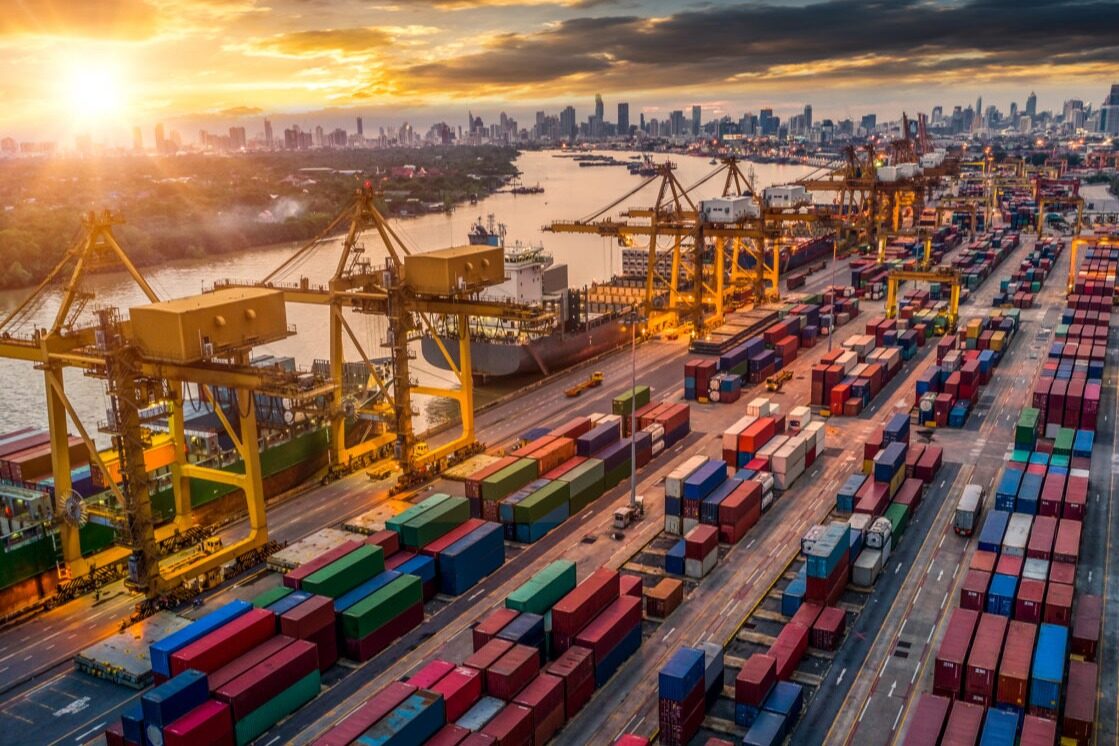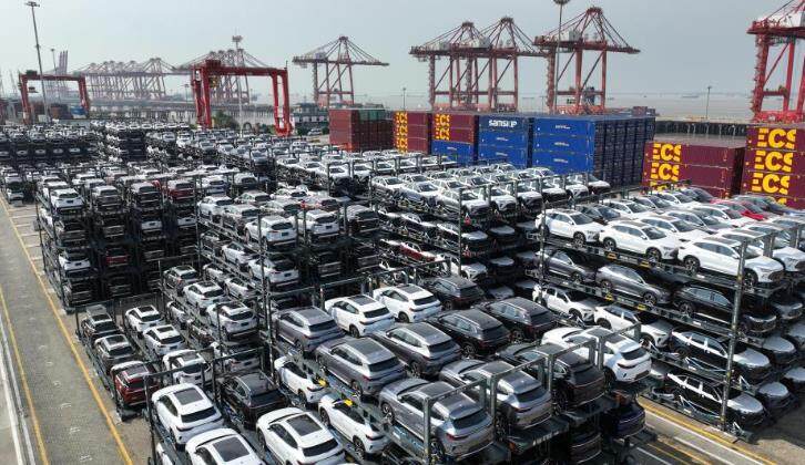 在江苏省太仓港国际集装箱码头一批新能源汽车即将通过专用框架运输方式出口