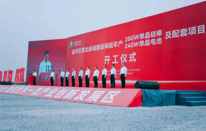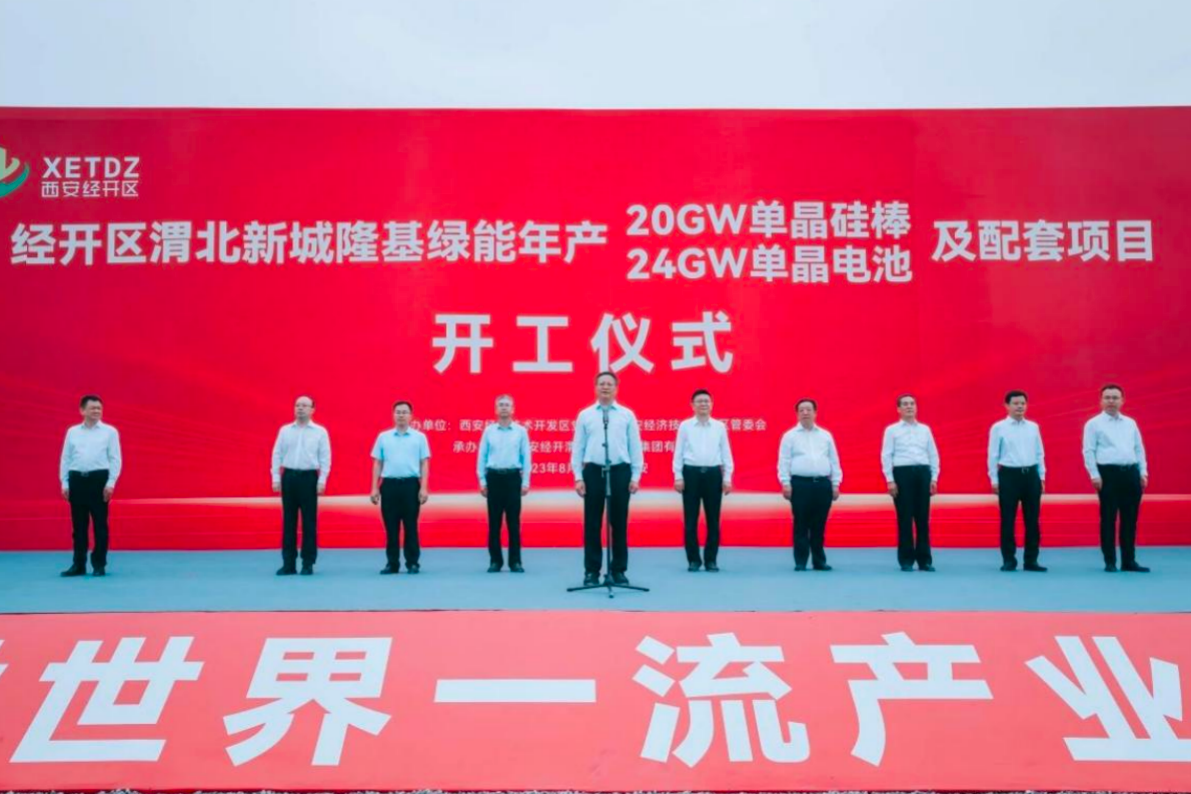 2023年8月18日,隆基绿能年产20GW单晶硅棒、24GW单晶电池及配套项目在西安经开区渭北新城正式开工。