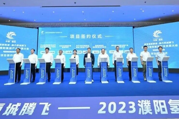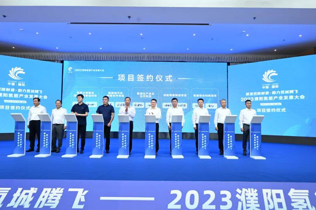 2023年8月18日,以聚焦氢链制造·助力氢城腾飞为主题的2023濮阳氢能产业发展大会举行重点项目签约仪式。现场签约10个项目、总投资70亿元,涉及制氢、储氢、加氢、整车制造等氢能装备制造全产业链项目。来自中国各地的中国氢能领域的顶级专家学者、行业精英近300人参加签约仪式,签约共分两组进行。