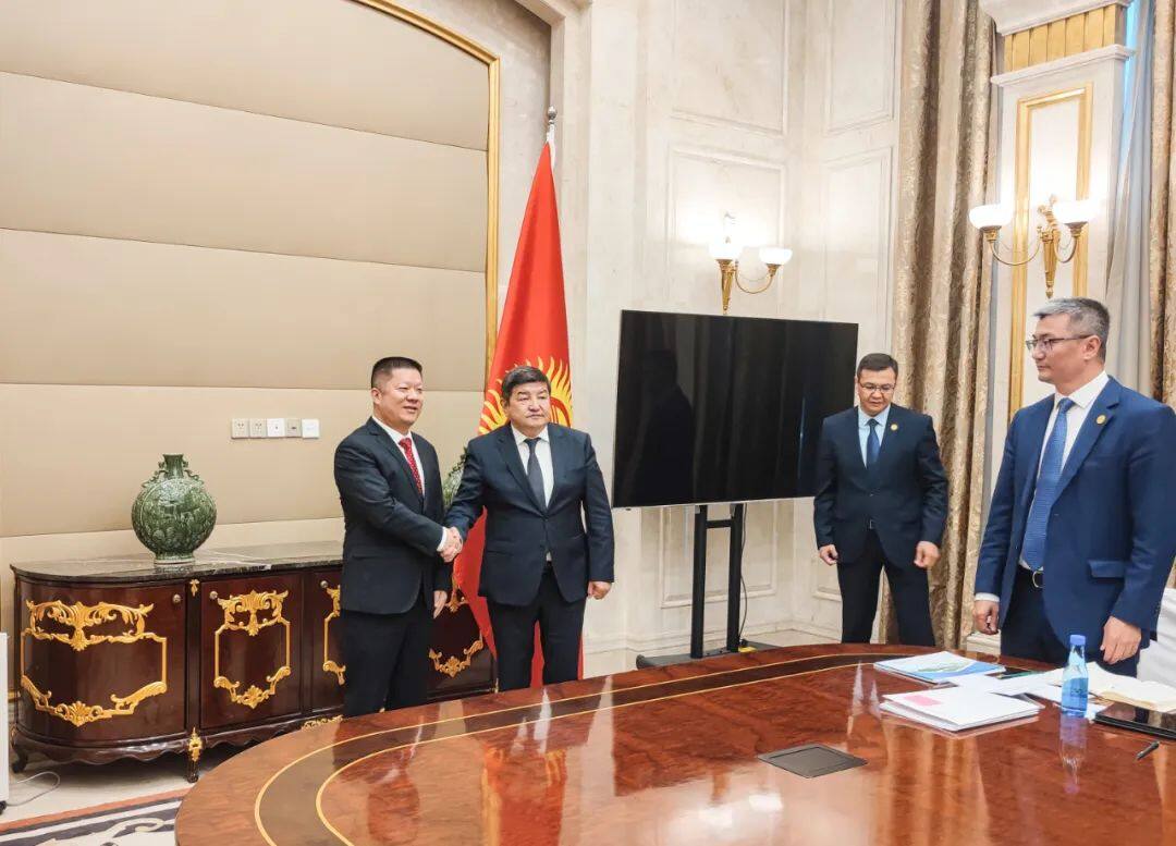 2023年8月18日,来华访问并出席2023(中国)亚欧商品贸易博览会的吉尔吉斯斯坦总理阿·扎帕罗夫与中铁五局总经理田波在新疆迎宾馆举行会谈。双方围绕水利水电、铁路、公路和隧道项目进行了深入沟通并达成广泛共识,双方还签署了萨里贾兹梯级水电站项目意向性协议。