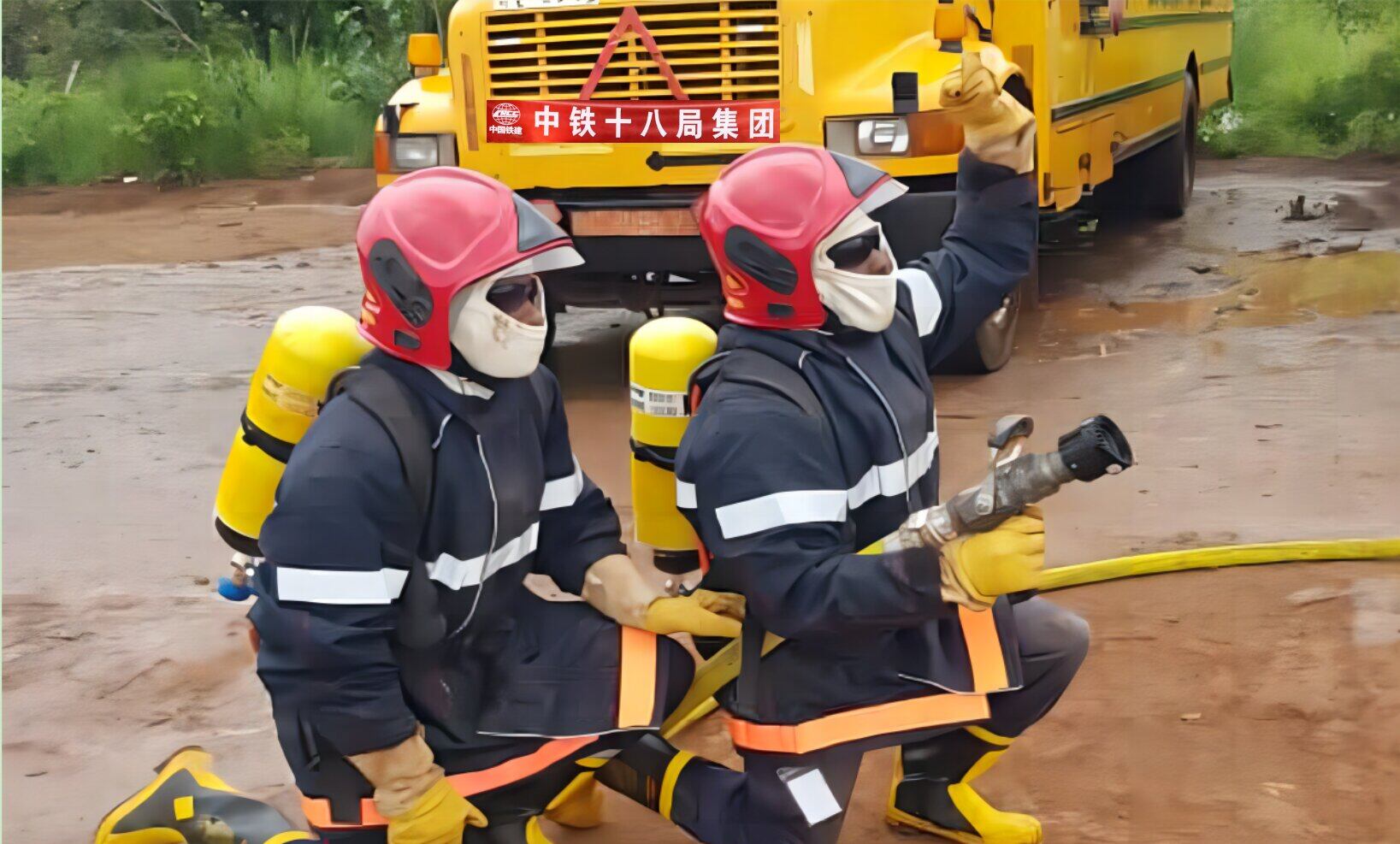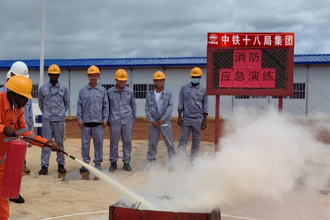 中铁十八局集团几内亚公司项目进行消防应急演练