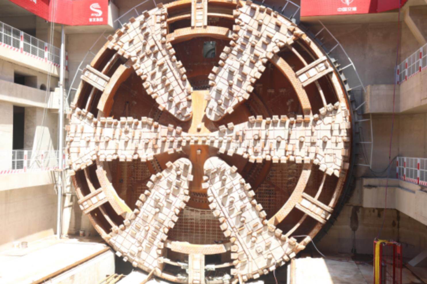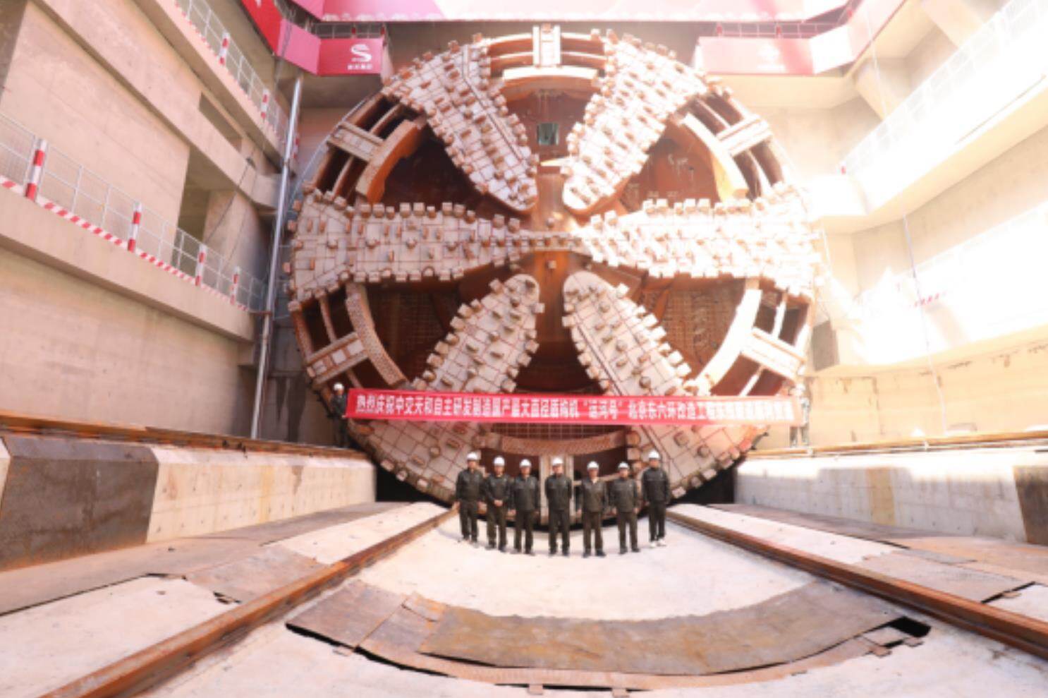 为此,中交天和为该项目量身打造了中国最大,开挖直径达16.07米的超大直径盾构机运河号。其整机总长约145米,总重量约4500吨,国产化率达到98%以上,是国产首台16米级超大直径盾构机,是我国迄今研制具有完全自主知识产权的最大直径泥水平衡盾构机之一,配备了中交天和自主研发的全球首创长距离掘进不换刀技术、泥水分层逆洗循环技术等多项针对性设计,全球范围内首次将光纤磨损检测技术应用于盾构刀具检测上等,实现了超大直径盾构机卡脖子关键核心技术全部突破,成为领跑全球大盾构技术创新性变革创下新的里程碑。2023年6月9日,随着中交天和与中科院联合研制的我国首台超大型盾构机用主轴承—“破壁者”通过了以钱七虎、李依依等院士领衔的专家组评审,标志着国产盾构机完成了那最后2%的蜕变,一举成功打通了超大直径盾构机全国产化的最后一公里!
