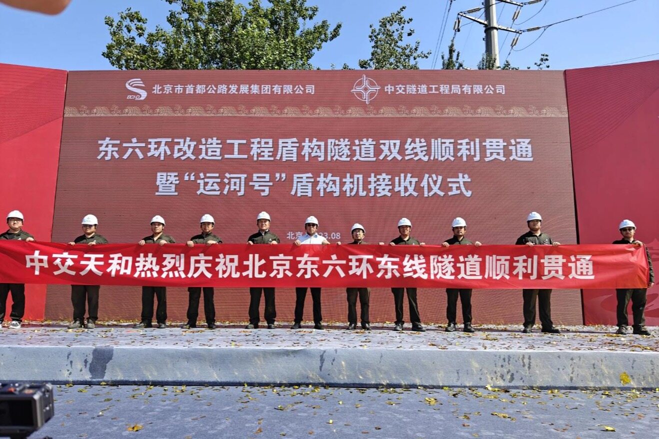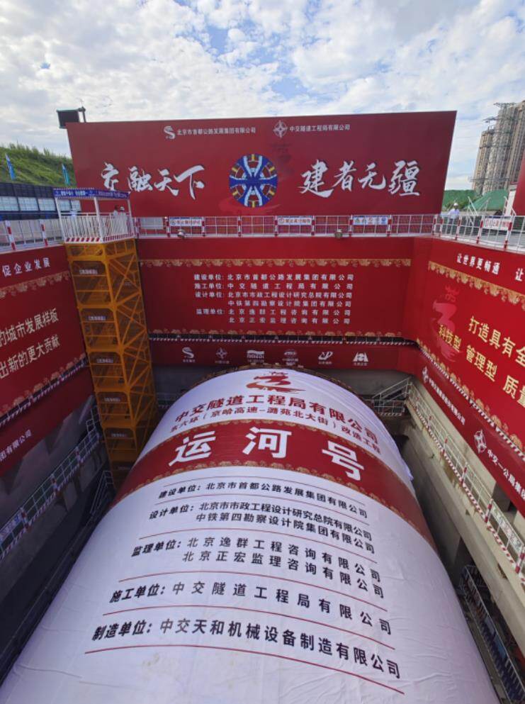 2023年8月21日上午,中交天和自主研制、用于北京东六环改造工程东线隧道的国产最大直径盾构机运河号贯通仪式如期举行,标志着中国最长盾构高速公路隧道双线贯通,也为全线早日通车打下了坚实基础。