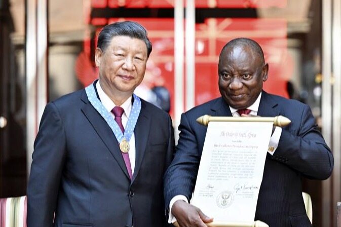 2023年8月22日上午,正在南非进行国事访问的国家主席习近平在比勒陀利亚总统府同南非总统拉马福萨会谈,两国元首就中南、中非合作和共同关心的国际地区问题深入交换意见,达成一系列重要共识,共同见证签署两国关于共建一带一路、新能源电力、农产品、经济特区和工业园区、蓝色经济、科技创新、高等教育等领域多项双边合作文件。