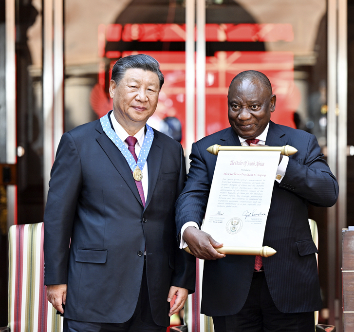 2023年8月22日上午,国家主席习近平在比勒陀利亚总统府同南非总统拉马福萨会谈,两国元首就中南、中非合作和共同关心的国际地区问题深入交换意见,达成一系列重要共识,共同见证签署两国关于共建一带一路、新能源电力、农产品、经济特区和工业园区、蓝色经济、科技创新、高等教育等领域多项双边合作文件。