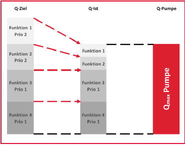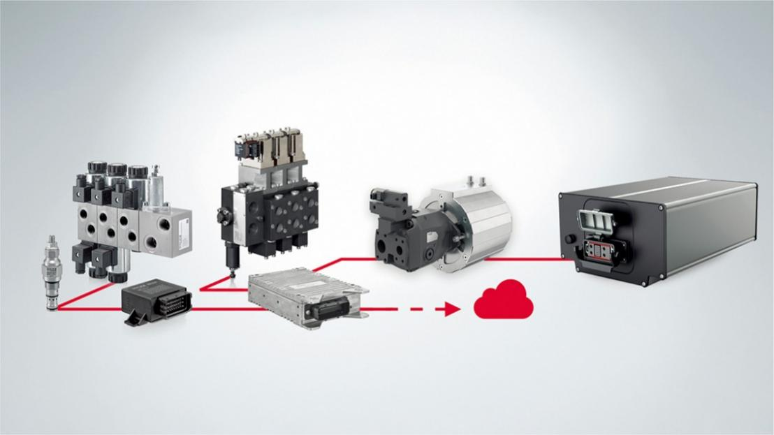 融合了流量共享的电子负载敏感 (eLS) 可实现额外的改善能效。在这种情况下,泵和阀可以通过CAN总线来操纵和控制。压力和温度等传感器以及相关的控制单元和软件一直被用来优化调节备用压力和超调压力, 以适应各自不同的应用情况。