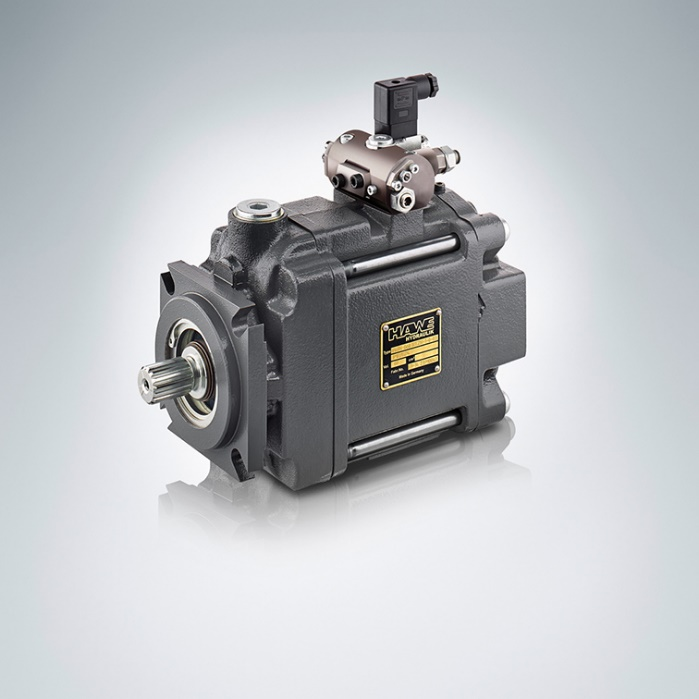 在电动行走机械中的泵,比如,V60N(HAWE)型变量轴向柱塞泵是通过电子调节来获得能效的