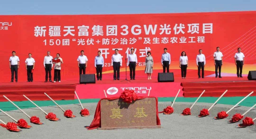 2023年8月30日,随着兵团党委常委、副司令员哈增友的宣布,由中新建电力集团投资建设的全疆最大3GW光伏项目150团“光伏+防沙治沙”及生态农业工程在八师150团25连正式开工,标志着兵团新能源产业发展进入新时期、新阶段、新高度。