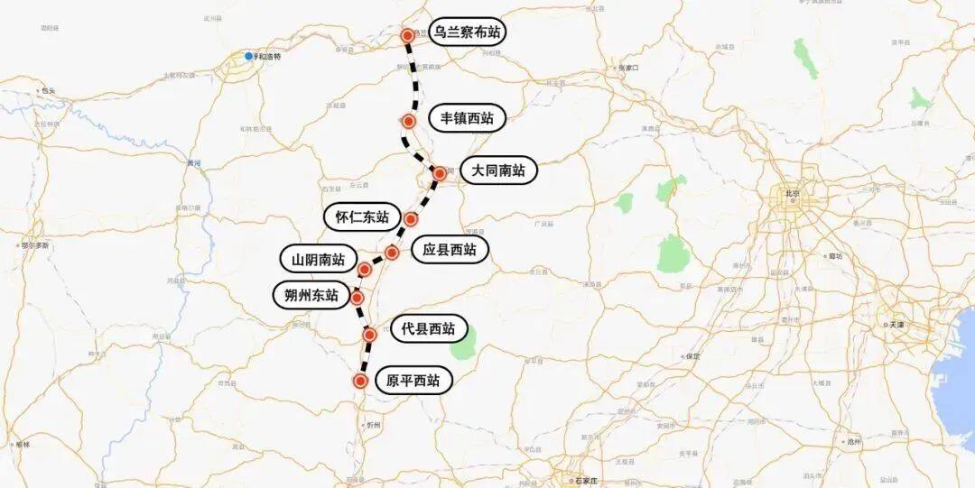 集大原高铁是国家“八纵八横”高速铁路网中呼南通道的重要组成部分,北起张呼高铁乌兰察布站,南接大西高铁原平西站,新建线路约270公里,设计时速250公里。