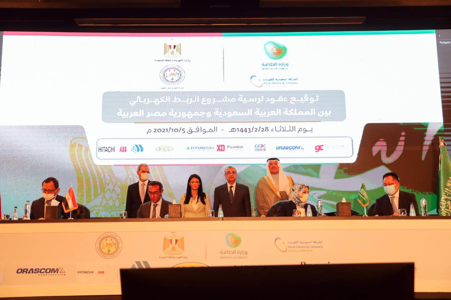 中国能源建设股份有限公司埃及代表处总经理姚刚和中国西电集团有限公司代表孙海文在埃及-沙特电力互联项目合作备忘录签署现场参与中标项目的签约
