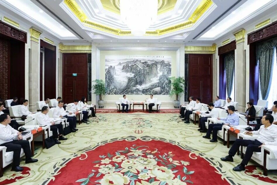 2023年9月8日,中国能建党委书记、董事长宋海良在贵阳拜会贵州省委书记、省人大常委会主任徐麟,双方围绕全面推进“东数西算”建设,开展多领域务实合作,更好服务和融入新发展格局进行交流,并见证贵州省人民政府与中国能建签署关于支持贵州建设“东数西算”国家枢纽战略合作协议。