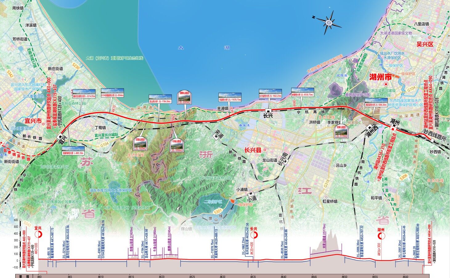 线路长度:62.378km,全线共设宜兴(属盐宜铁路工程)、长兴与湖州共3座车站,均为与既有宁杭高铁并站。