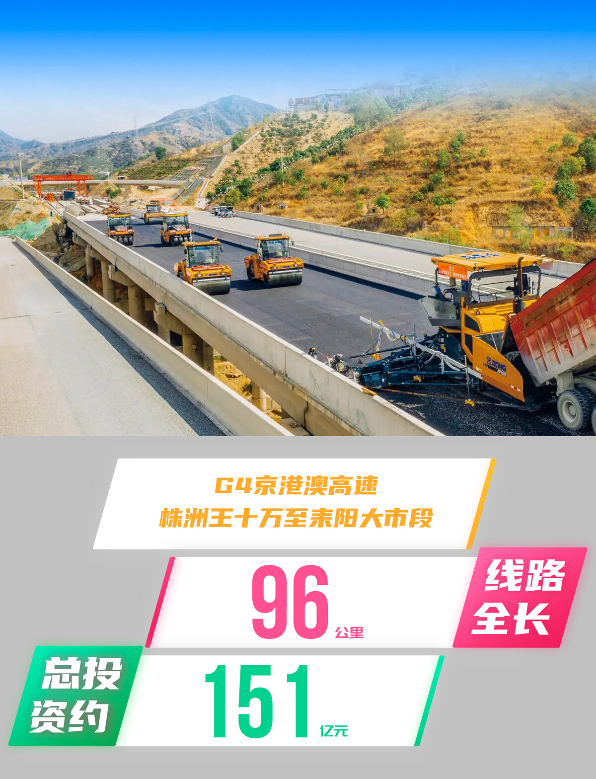 该项目涉及两个子项目:G4京港澳高速株洲王十万(朱亭)至耒阳大市段扩容工程项目和桂东至新田(宁远)高速公路桂东至郴州段项目。前者北段路线长约57.297公里,南段路线长约39.029公里,全长约96公里;后者主线起于郴州市桂东县,止于郴州市苏仙区,全长约93公里。