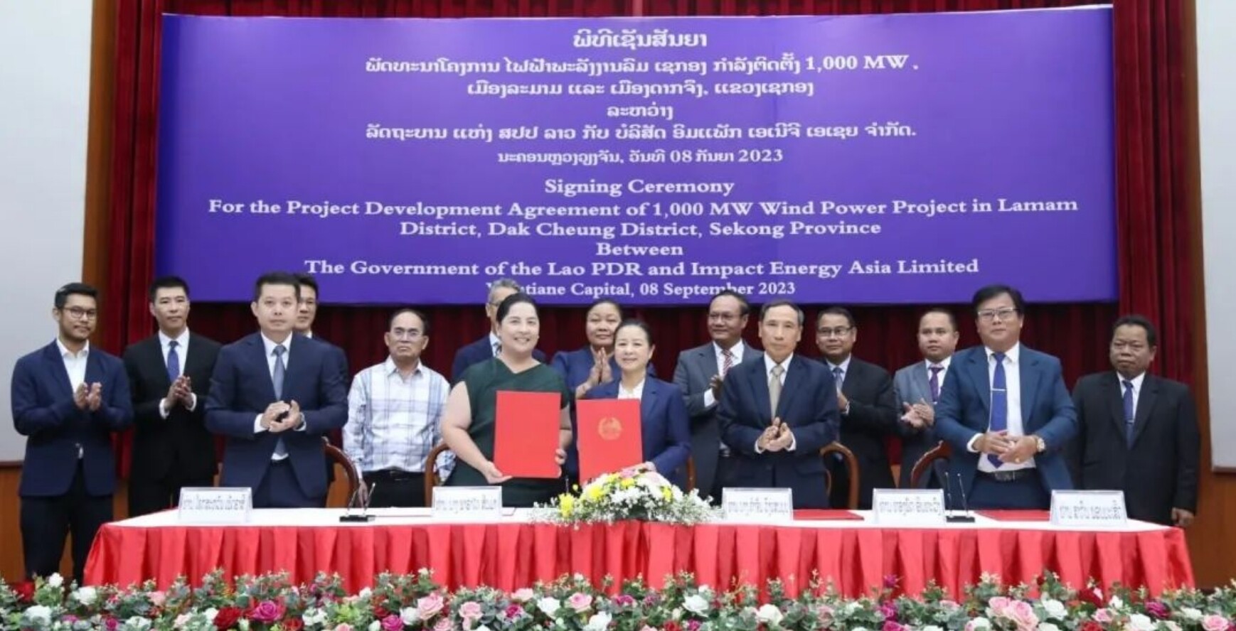 老挝政府近日与中国香港公司Impact Energy Asia Limited签署合作协议。据协议,Impact Energy Asia Limited将在老挝色贡省拉曼县和达建县开发1000MW风电项目。老挝计划投资部副部长康占·翁圣本女士和Impact Energy Asia Limited公司代表帕琳达·舍玛女士代表双方在协议上签字。