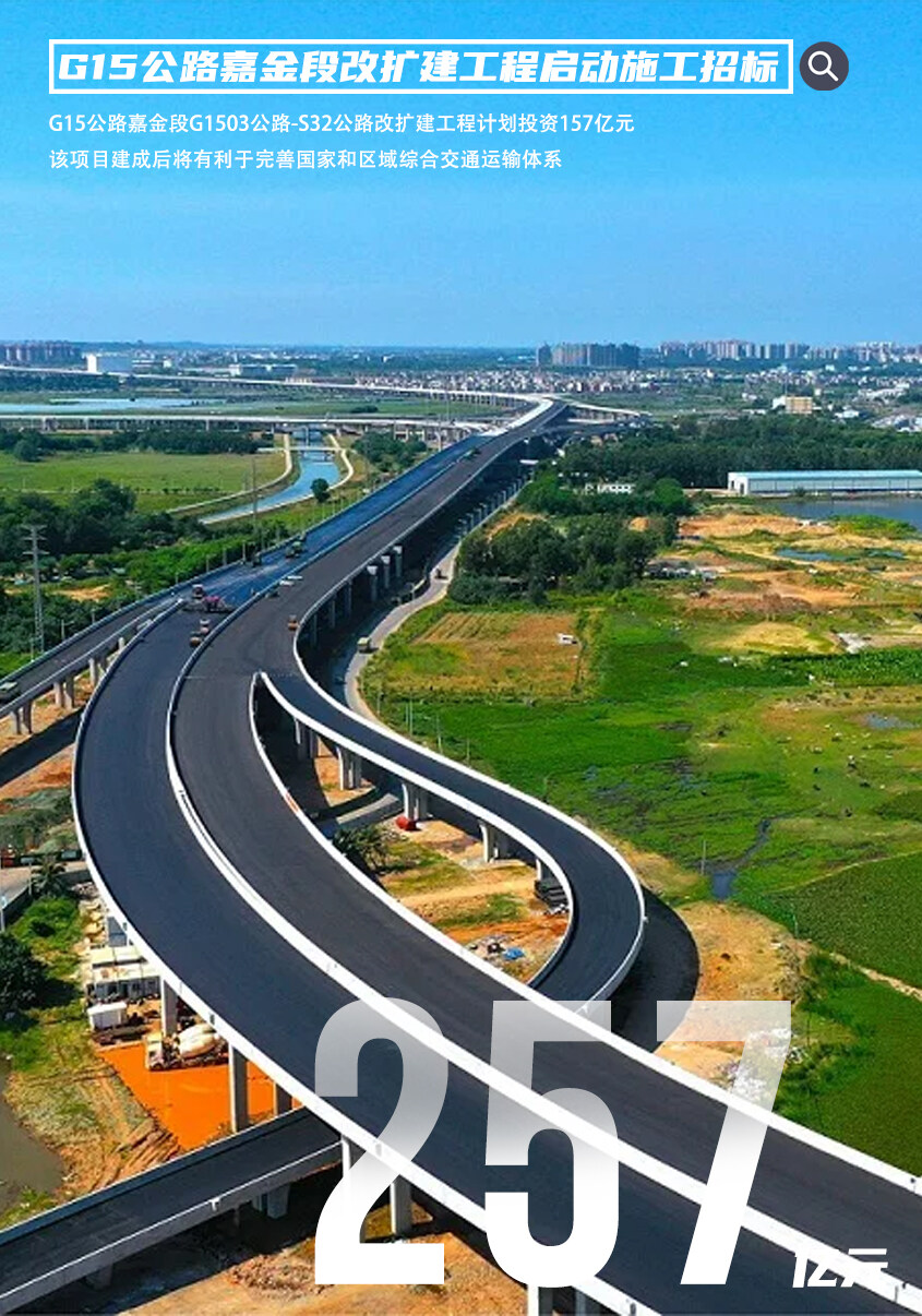 2023年9月12日,上海市公共资源交易中心发布了G15公路嘉金段G1503公路-S32公路改扩建工程主线施工招标公告,该项目所属行业公路,招标人上海沪申高速公路建设发展有限公司,项目总投资157亿元,计划工期1324日历天。