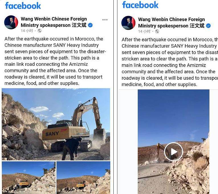 摩洛哥地震发生后,中国制造商三一重工向灾区派出7台设备进行道路清理。这条道路是连接Amizmiz社区和受影响地区的主要道路,一旦道路被清理干净,它将被用来运输药品、食品和其他物资。