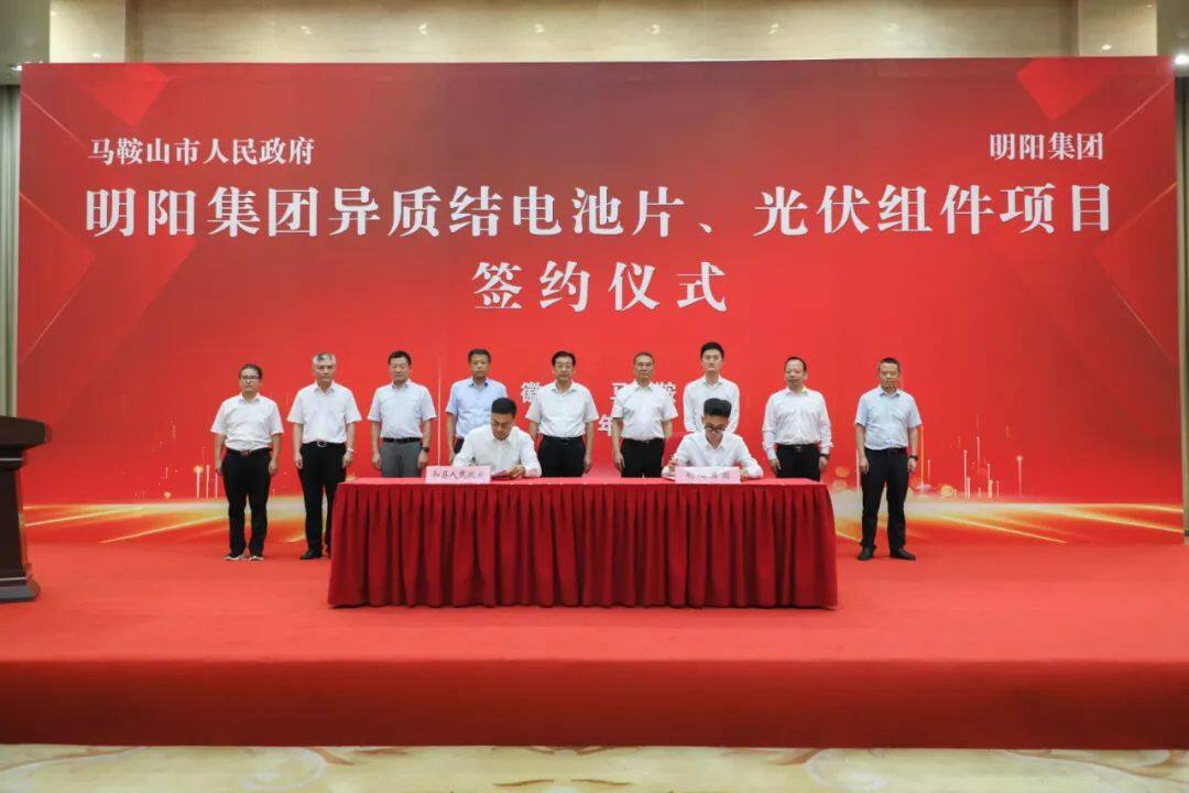 近日,明阳集团与马鞍山市人民政府签署了战略合作协议,并签订了异质结电池片、光伏组件项目投资协议。