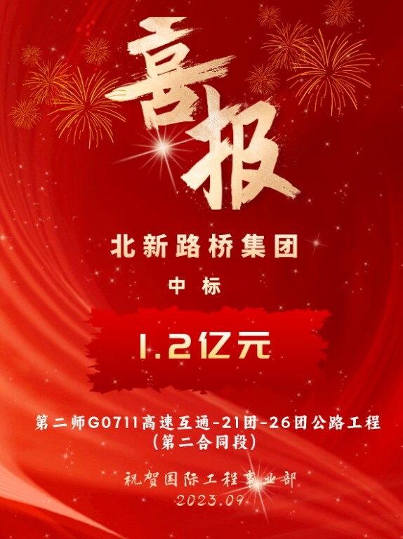 近日,从北新路桥国际工程事业部传来喜讯,9月12日收到第二师交通局关于第二师G0711-21团-26团公路工程(第二合同段)《中标通知书》。