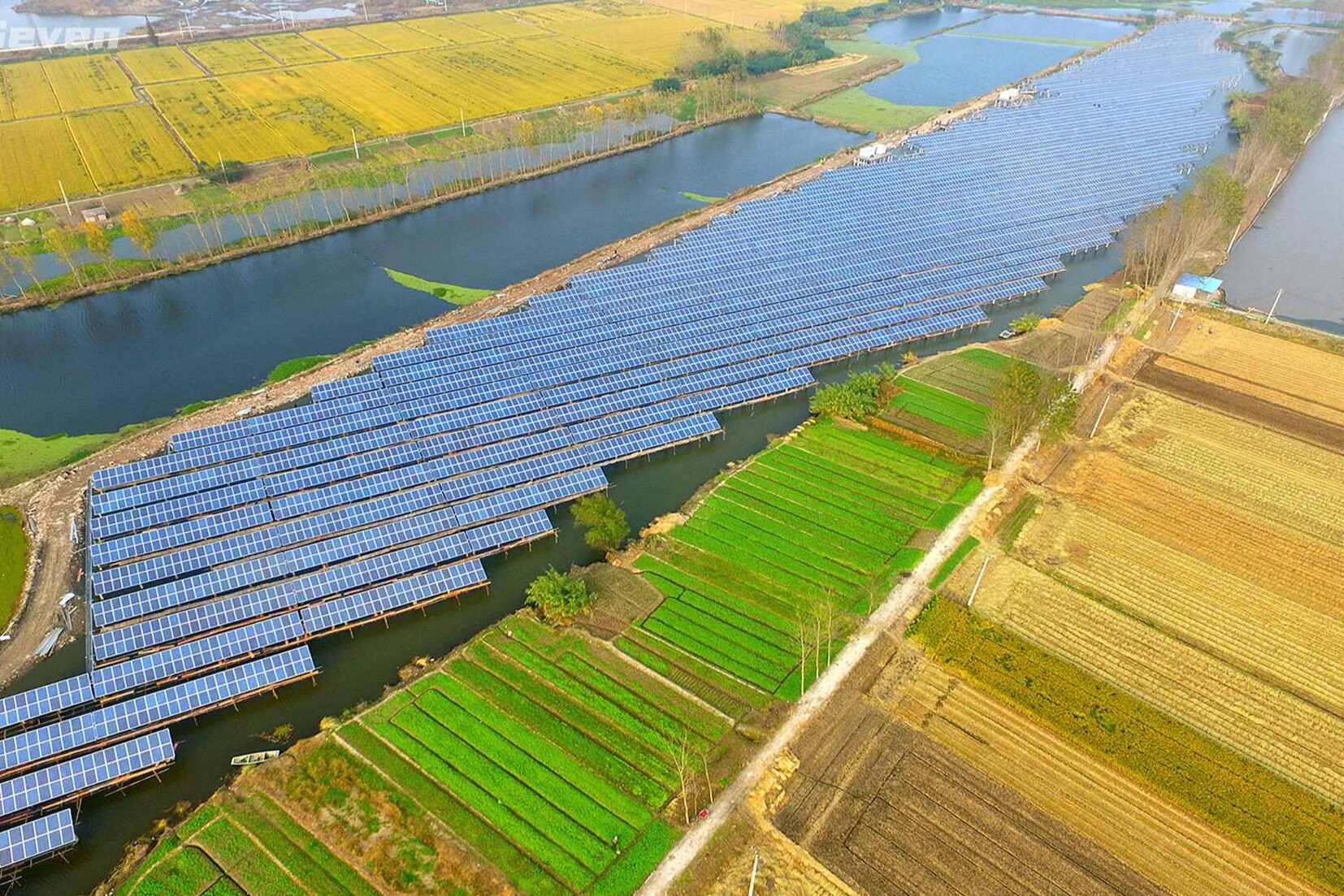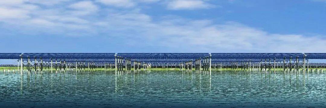该项目位于江苏省连云港市连云港经济技术开发区,占地面积约7828亩,装机容量为交流侧450兆瓦,配置储能容量为45兆瓦/90兆瓦时。项目采用渔光一体模式综合开发,主要是采用大跨距柔性支架,将光伏电站与农业相结合,形成上可发电,下可养殖的发电模式,可有效节约土地628亩,提高土地利用率30%。
