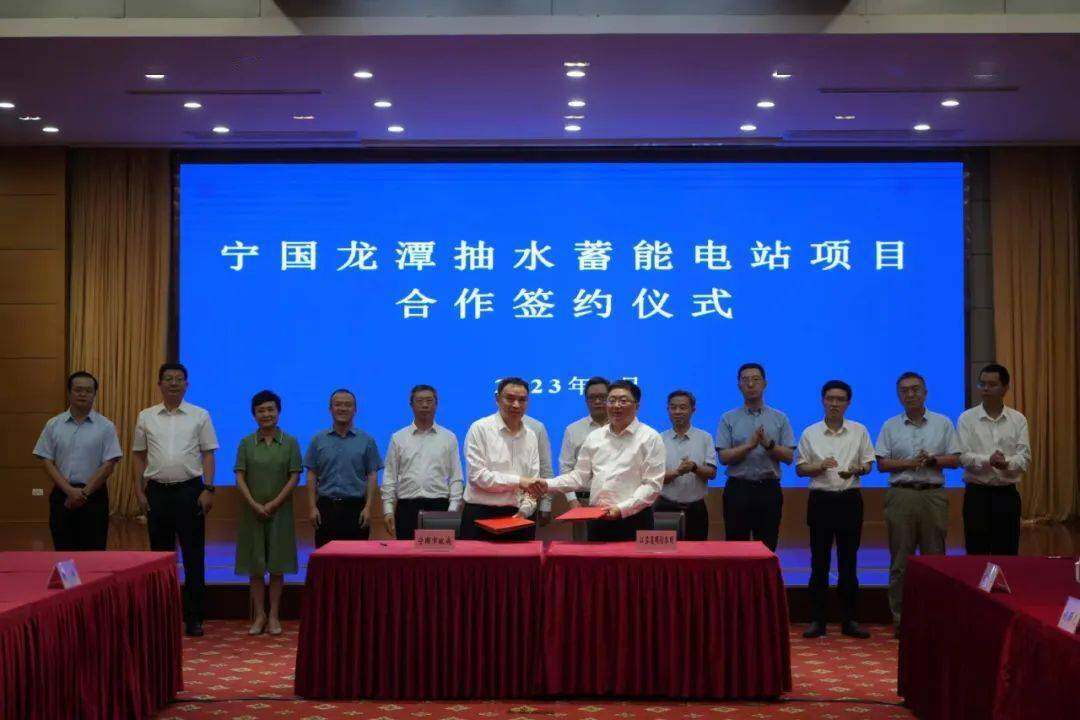 十四五是抽水蓄发展的黄金时期,项目建设将助推经济可持续发展。2023年9月20日,江苏省能源局、国信集团一行来宁签署宁国龙潭抽水蓄能电站项目合作协议。江苏省国信集团党委书记、董事长董梁,江苏省能源局新能源处处长卢先率等江苏方相关单位负责人,宣城市委常委、宁国市委书记倪志品,安徽省能源局新能源处处长汪路航,市委副书记、市长杜德林,市人大常委会主任金庆文,市政协主席陈柏平,市委常委、常务副市长盛清,宣城及市相关单位负责人参加签约仪式。