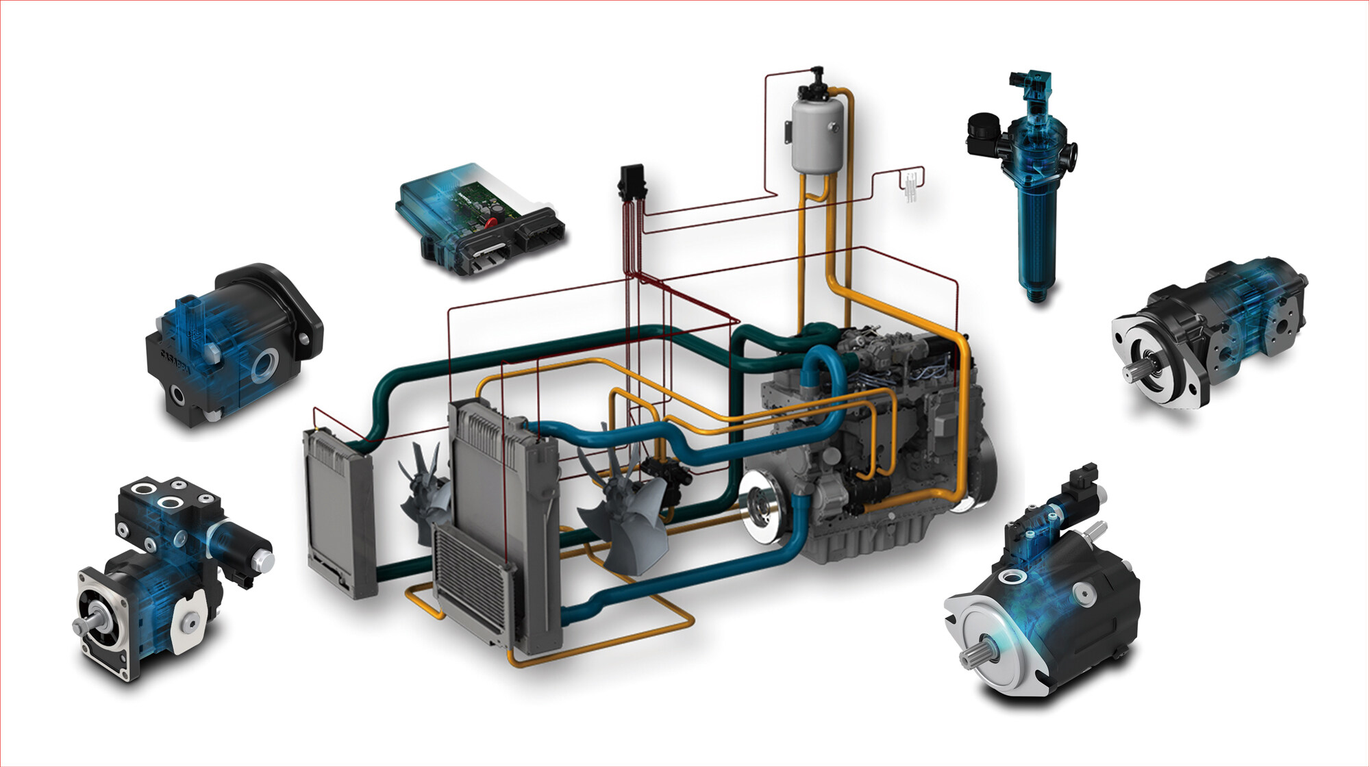 电控液压风扇系统,由液压泵和液压马达驱动,不受发动机转速控制,可根据现场作业情况精确控温,实现高效冷却、节能减排并减少工作噪音。以大型挖掘机为例,相较于传统风扇,安装的电控液压风扇系统可节油14.5%左右,一年下来可以节省约16万人民币;同时,每工作10个小时排放的氮氧化物可减少3kg,真正做到高效、减排,满足非道路国四排放标准的前提下,还能为客户节省大量的运营成本。