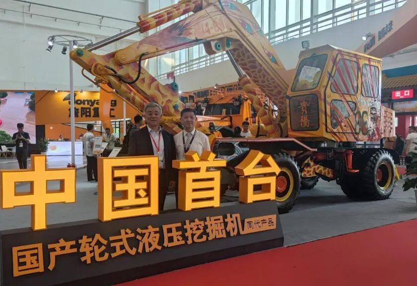 除了最新技术装备让人惊叹,现场还有一台詹阳最老的设备:W4-60C轮胎式液压挖掘机吸引观众驻足留连。它是我国首台国产轮式液压挖掘机,也是我国工程机械第一块国家银质奖,是当时我国机械工业中的最高荣誉。它的诞生打破了国外品牌对这类产品的垄断,代表了中国国产轮胎式挖掘机的崛起,是一代人艰苦创业的见证者,也充分展现了詹阳重工弥足珍贵的光辉成长史。