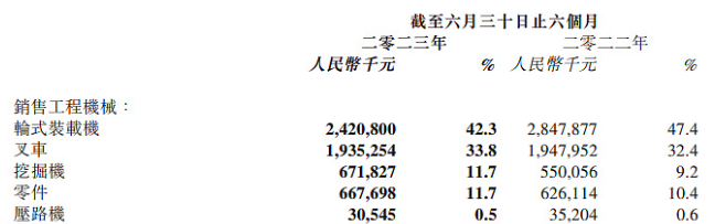 再看看挖掘机行业另一个知名二线品牌龙工的数据,龙工公布数据显示,2023年上半年公司营收57.26亿,挖掘机收入6.72亿。