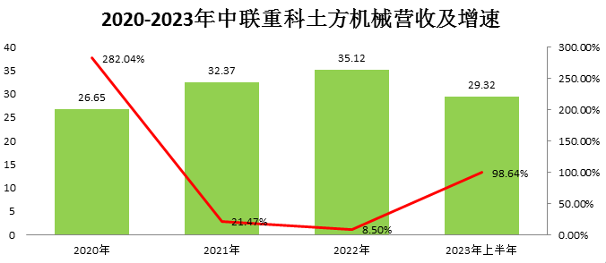 2023年,在海外市场火热的加持下,中联重科土方机械开始第二波起飞,以几乎翻倍的增速半年就拿下29亿的业绩,全年估计能到50亿左右的规模。