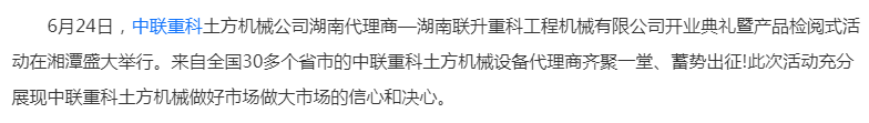 2019年6月24日,中联重科土方机械湖南代理商开业
