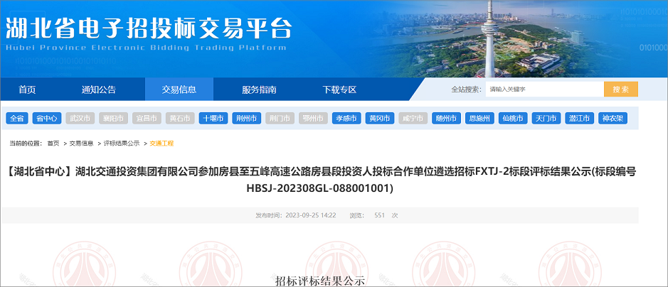 2023年9月25日,湖北省电子招投标交易平台发布了房县至五峰高速公路房县段投资人投标合作单位遴选招标评标结果公示,该项目总投资估算约73亿元。