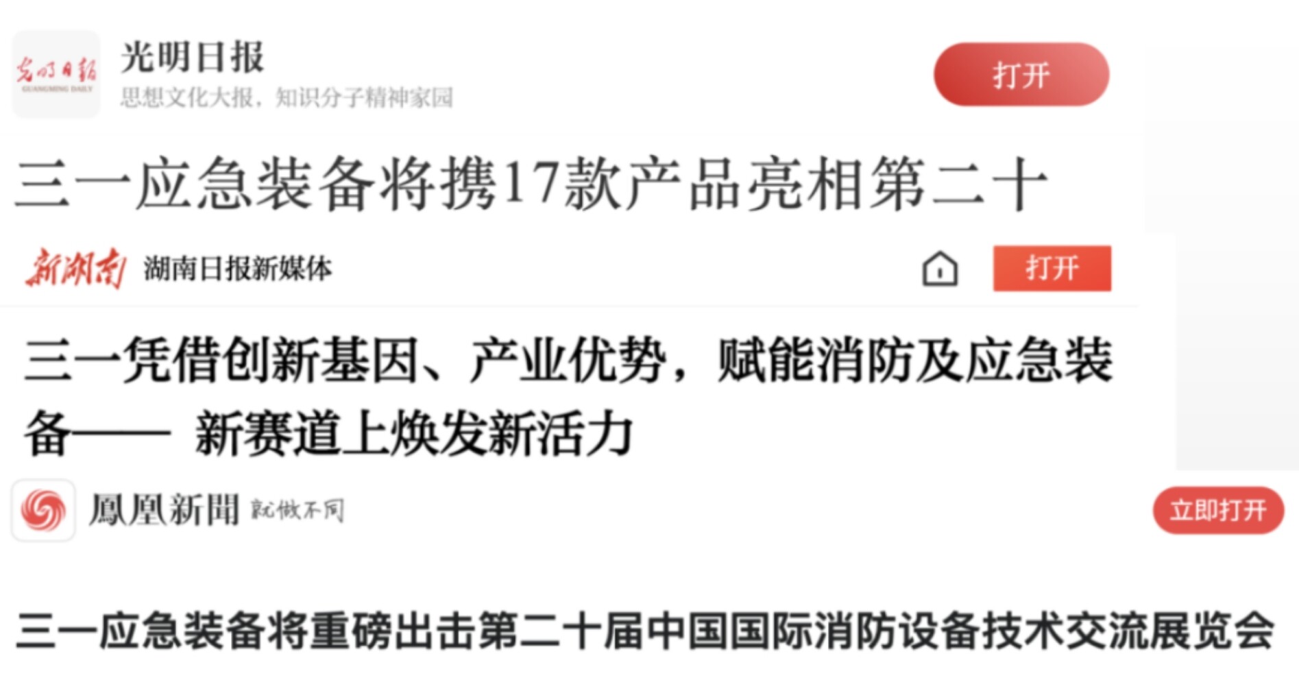 三一应急装备的领导向媒体朋友详细介绍了在即将开幕的北京消防展上,三一推出多款黑科技代表产品:核生化侦检消防车是国家自然灾害防治技术装备工程化攻关项目,PW04多功能高压喷雾消防车是国家应急管理部2021年科技计划项目,以及国内支干线机场首选产品机场消防车、解决远距离供水难题的BP300泵浦消防车和DF20水带敷设车、拥有多项首创技术的三一登高平台消防车、PM180重型泡沫消防车、森林防火通道开设车、重载无人机等。媒体团代表们纷纷表示将会在北京展期间,积极向公众宣传三一在消防及应急装备领域集中展现的最新成果。