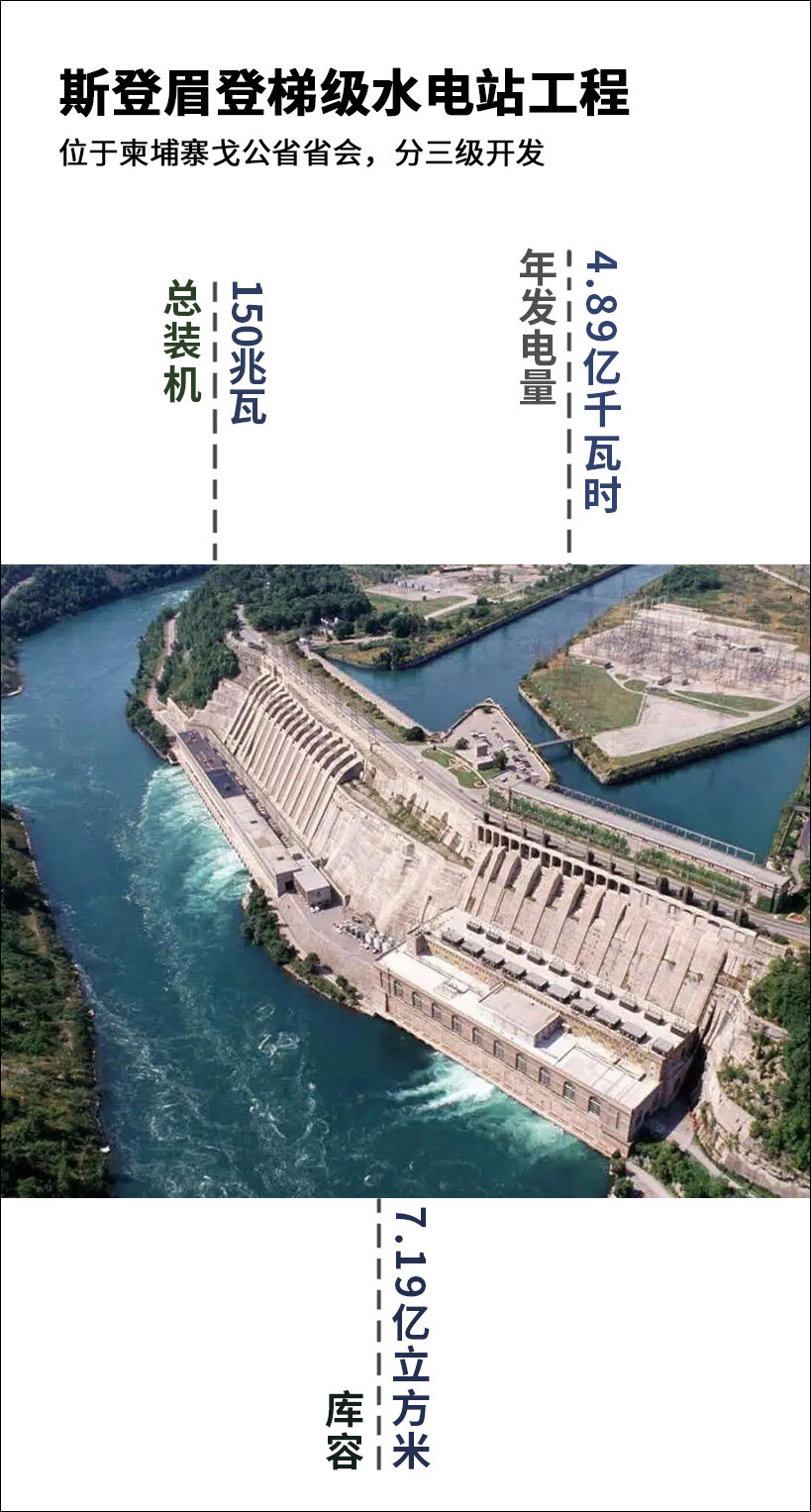 斯登眉登梯级水电站工程区位于柬埔寨戈公省省会,分三级开发,总装机150兆瓦,年发电量4.89亿千瓦时。本次签约的一级水电站项目,采用混凝土面板堆石坝,主要建筑包含右岸溢洪道、左岸引水系统、地面厂房等,库容7.19亿立方米,装机容量57兆瓦,工期46个月。该项目是柬埔寨本地企业自有资金投资的第一个水电站,也是中国电建在柬埔寨承建的第七个水电站项目。项目建成后将为柬埔寨提供充足稳定的清洁能源,为实现碳中和目标做出贡献。