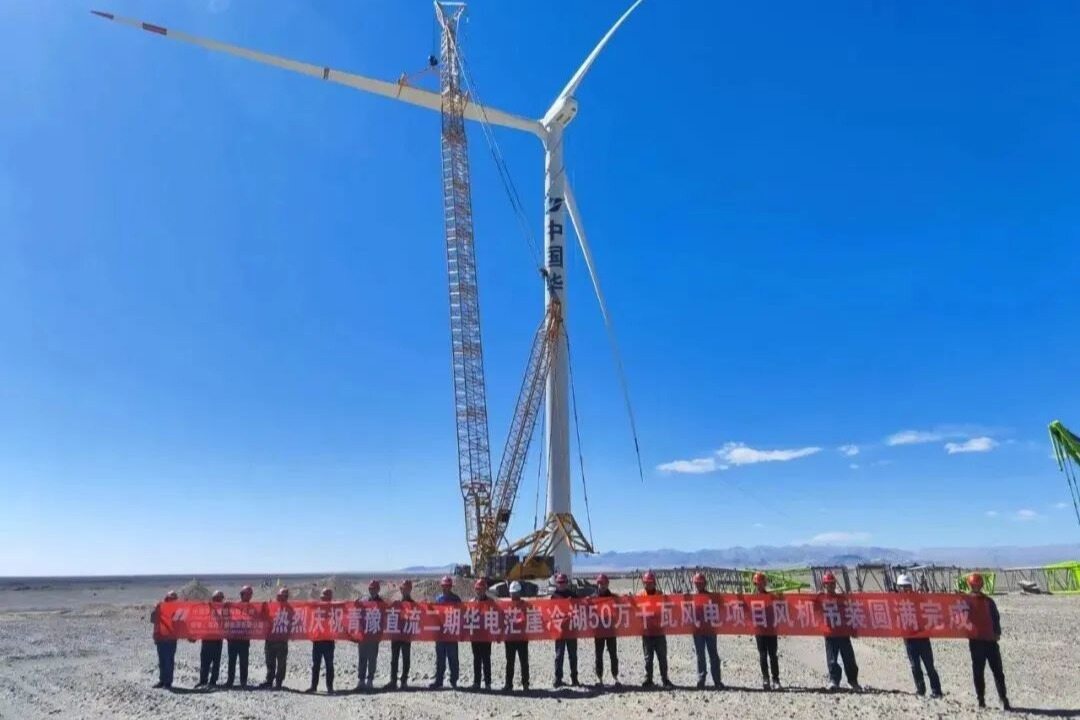 “追风”不止,“双节”不停。2023年9月28日,随着最后一台6.7兆瓦风力发电机组叶片和轮毂精准对接就位,华电青海茫崖冷湖50万千瓦风电项目圆满完成全部75台风机吊装,即将进入调试并网发电阶段,全面吹响项目投产攻坚冲锋号。