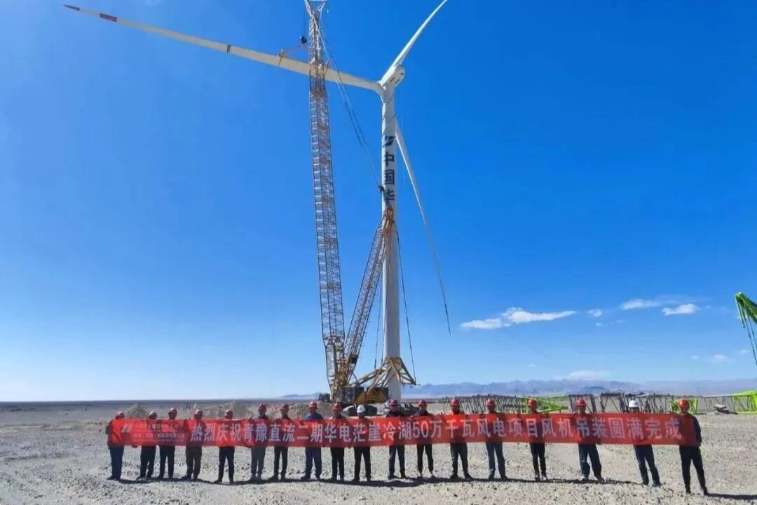 The "chasing the wind" will not stop, and the "double festival" will not stop. On September 28, 2023, with the blades and hubs of the last 6.7-MW wind turbine set accurately docked in place, HUADIAN CORPORATION LTD. QINGHAI COMPANY Mangya Lenghu 500,000-kilowatt wind power project successfully completed the hoisting of all 75 wind turbines. Entering the stage of debugging and grid-connected power generation, the charge for the project to be put into production has been fully sounded.